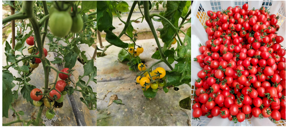 采摘园的小刘师傅介绍到:我们种植的小番茄品种经过多年精心选育,口感独特。有红,黄,青三种品种。区别与市面上大多数品种。种植上用的大豆和菜籽饼有机肥,一年只种一季,所以土壤有机质含量高。种植出来的番茄味道浓厚,果实鲜亮,饱满爆汁,有小时候的味道。采摘的回头客很多,很多人慕名而来。